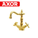 Назначение: для умывальника • Конструкция: двухрычажный • Монтаж: горизонтальный • Материал: покрытие - золото • Монтажные отверстия: 1 отверстие • Форма излива: традиционная • Душевая лейка в комплекте: нет • Донный клапан в комплекте: есть
