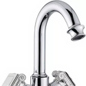 Назначение: для умывальника • Конструкция: двухрычажный • Монтаж: горизонтальный • Материал: латунь, покрытие - хром • Подводка: гибкая • Монтажные отверстия: 1 отверстие • Форма излива: традиционная • Душевая лейка в комплекте: нет • Аэратор: есть • Донный клапан в комплекте: есть