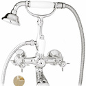 Назначение: ванна+душ • Конструкция: двухрычажный • Монтаж: вертикальный • Материал: латунь, покрытие - золото • Подводка: жесткая • Монтажные отверстия: 2 отверстия • Форма излива: традиционная • Душевая лейка в комплекте: есть • Держатель для душевой лейки: на смесителе