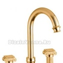 Назначение: для умывальника • Конструкция: двухрычажный • Монтаж: вертикальный • Клапан: керамический • Материал: латунь, покрытие - золото • Подводка: жесткая • Монтажные отверстия: 3 отверстия • Форма излива: традиционная • Душевая лейка в комплекте: нет • Аэратор: есть • Донный клапан в комплекте: есть