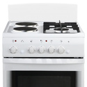газ + электро панель + электрический духовой шкаф • поверхность: эмалированная сталь • управление механическое • без таймера • размеры (ШхГхВ): 50x60x85 см • цвет белый