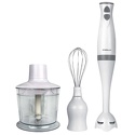 Тип: погружной (ручной) блендер • Мощность: 500 Вт • Скорости: 2 шт, импульсный • Насадки: ножка, венчики, нож для измельчителя