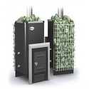 Пристенная банная печь, отапливаемый объем 16 куб.м, закрытого типа, древесное топливо
