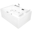 Материал: акрил • Расположение: отдельно стоящая • Форма: прямоугольная • Количество мест: двухместная • Гидромассаж: есть, 16 форсунок • Подсветка: есть • Комфорт: подголовник • Смеситель в комплекте: есть • Размеры (ДxШxВ): 180x120x70 см