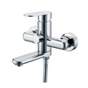 Назначение: ванна+душ • Конструкция: однорычажный • Монтаж: вертикальный • Клапан: керамический • Материал: покрытие - хром • Подводка: жесткая • Монтажные отверстия: 2 отверстия • Форма излива: традиционная • Душевая лейка в комплекте: нет • Аэратор: есть • Донный клапан в комплекте: есть