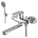 Термостат - Нет, Количество монтажных отверстий - 2, Тип - Однозахватный, Материал корпуса - Латунь, Встраиваемый - Нет, Покрытие - Хром, Назначение - Для ванны и душа, Присоединительный размер - 1\2", Комплектация - Держатель душевой лейки, ручной душ, Тип подводки - Жесткая, Форма излива - Традиционная, Аэратор - Есть, S-образные эксцентрики - Есть, Поворотный излив - Нет, Глубина - 25.9, Длина излива - 234, Цвет - Серебристый, Донный клапан - Нет