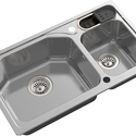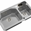Форма чаши: нестандартная • Материал: нерж. сталь • Количество чаш: 1 основная, 1 дополнительная • Установка: врезная • Глубина чаши: 20.3 см • Измельчитель пищевых отходов: нет • Размеры: 81x46 • Мотажное отверстие: 81x46 • Диаметр сливного отверстия: 3 "