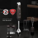 Тип: погружной (ручной) блендер • Мощность: 1350 Вт • Скорости: 2 шт, импульсный • Насадки: ножка, венчики, нож измельчителя