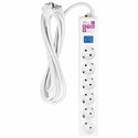Розеток: евро 5 шт, евро без заземления 1 шт • Длина кабеля: 5 м • Мощность подключения: 3500 Вт, 16 А • Защита: короткое, перепады, импульсные