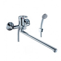 Комплектация - Держатель душевой лейки, душевой шланг, ручной душ, Аэратор - Есть, Форма излива - Традиционная, Покрытие - Хром, Количество монтажных отверстий - 2, S-образные эксцентрики - Есть, Ширина - 21.5, Присоединительный размер - 1\2", Тип - Однозахватный, Материал корпуса - Латунь, Цвет - Серебристый, Термостат - Нет, Глубина - 41.8, Тип подводки - Жесткая, Донный клапан - Нет, Назначение - Для ванны и душа, Поворотный излив - Да, Длина излива - 403, Встраиваемый - Нет