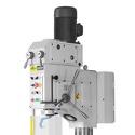 Мощность: 2200 Вт, до 1450 об/мин • Патрон: под конус Морзе и быстрозажимной, MK4, 13 мм • Шпиндель (пиноль): вылет 350 мм, ход 180 мм • Опорная плита: 560x560 мм